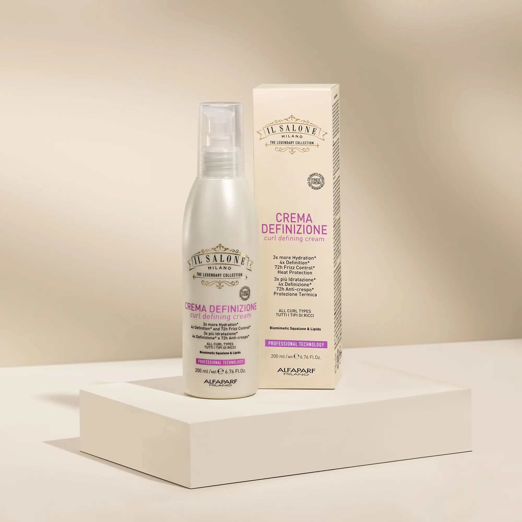 Професійний фіксуючий крем для всіх типів локонів. Формула зі скваланом та біоміметичними ліпідами створює захисну плівку, яка утримує вологу, завдяки чому локони стають у 3 рази більш зволоженими*. Миттєво приборкує і надає волоссю чіткої конфігурації, підкреслює природну форму локонів, залишаючи їх шовковистими на дотик. Локони стають у 4 рази більш чітко окресленими* та у 3 рази більш сяючими*. Забезпечує захист від вологи та тривалу фіксацію до 72 годин*. Термозахист до 230°C. Використовується перукарями.
