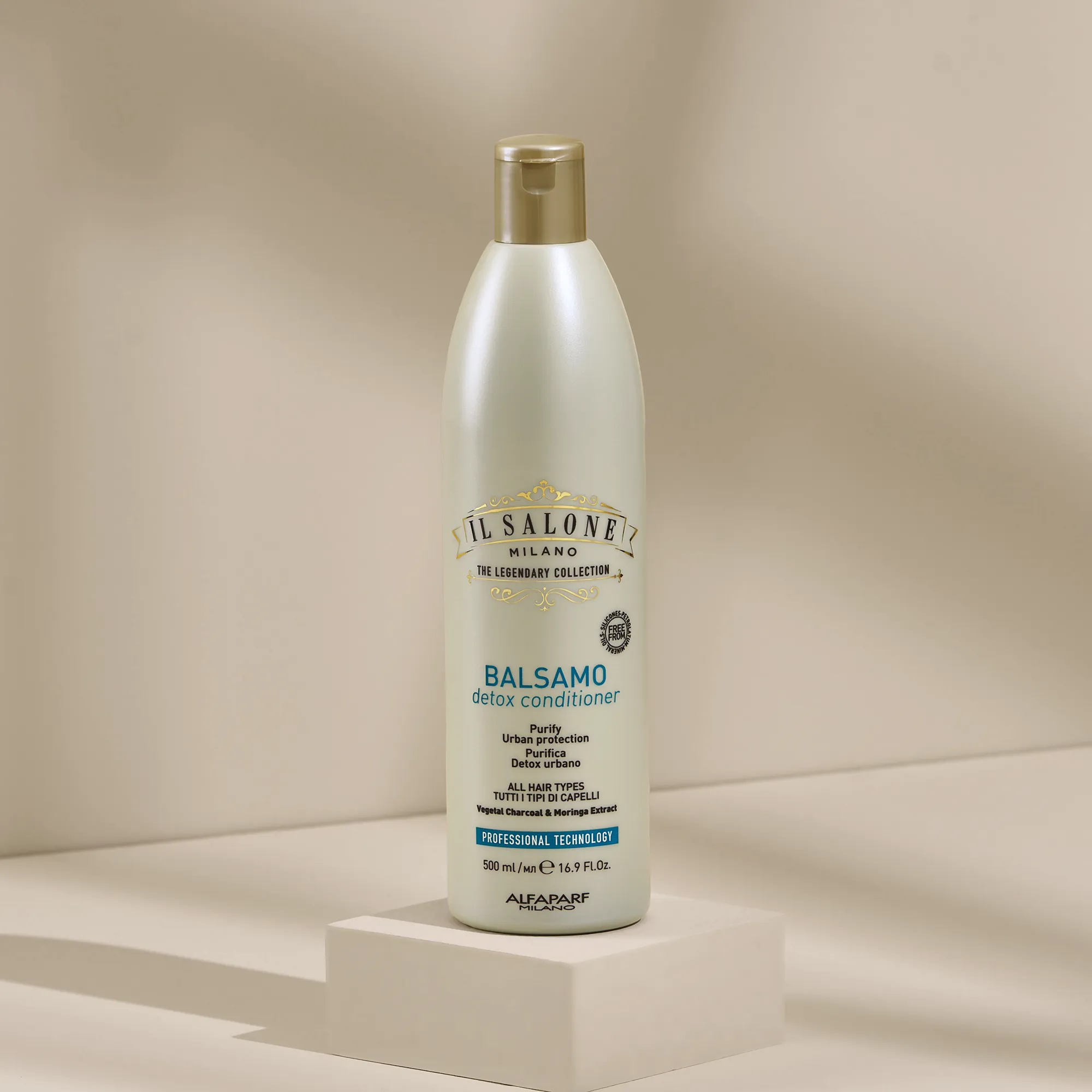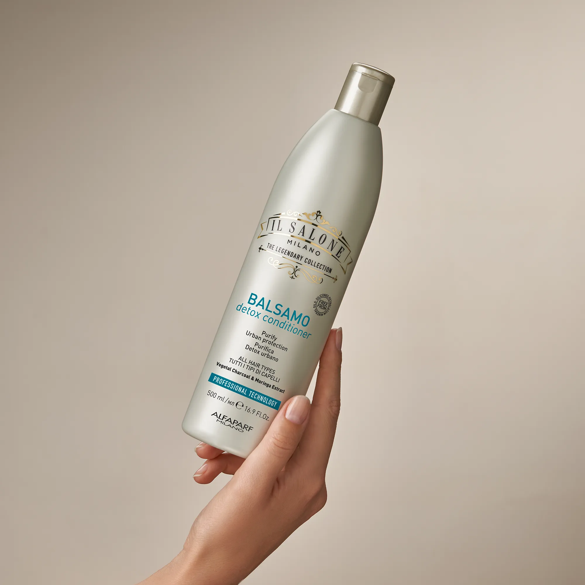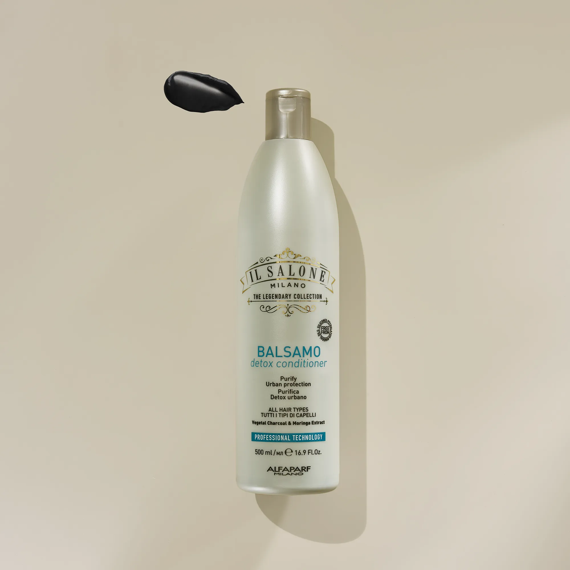 Професійний чорний кондиціонер для всіх типів волосся. Збагачений рослинним вугіллям, він поглинає забруднення, детоксикує та захищає волосся від забруднювачів*. Спеціальна суміш активних інгредієнтів відновлює природний баланс волосся та шкіри голови. Використовується перукарями.