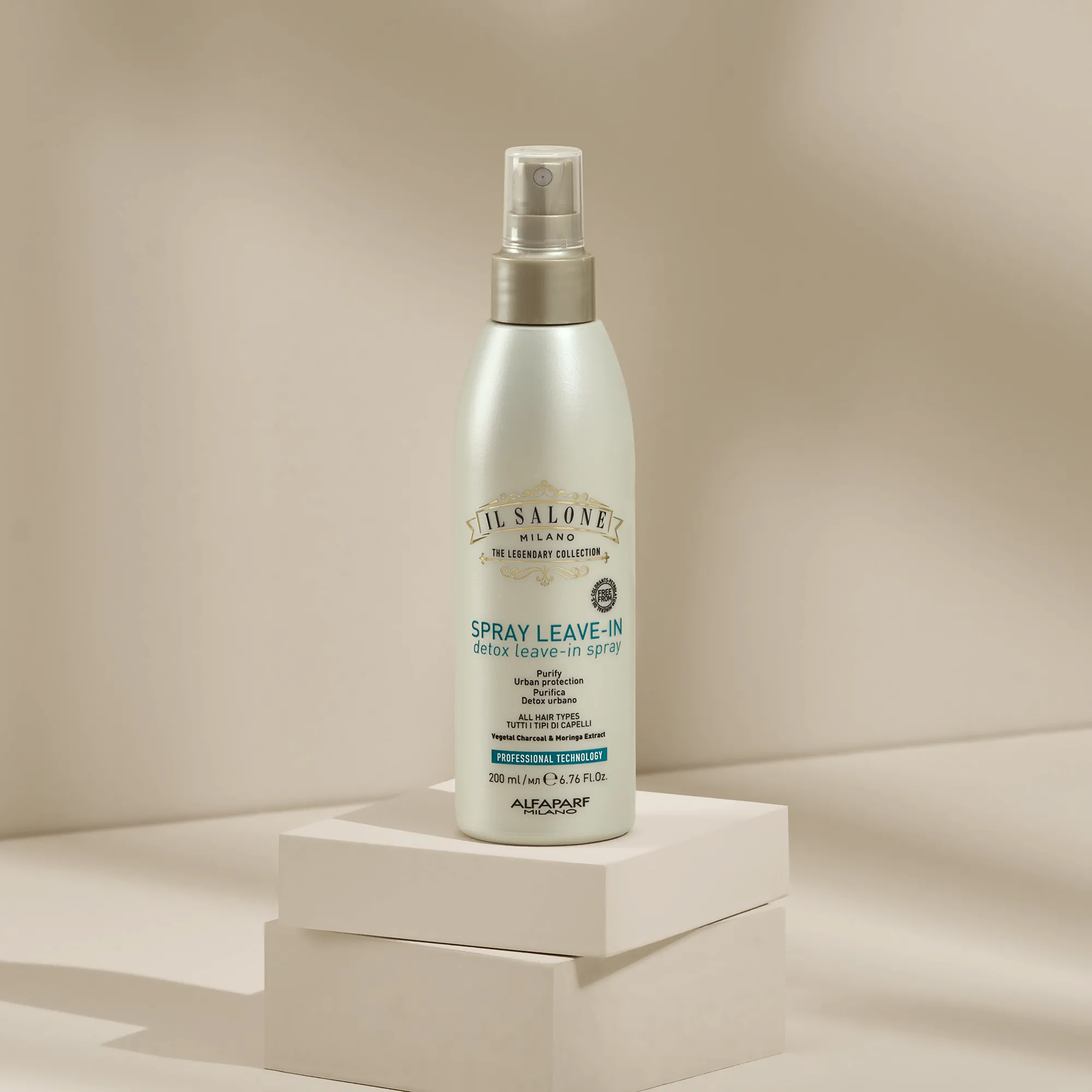 Професійний незмивний спрей для всіх типів волосся. Спеціальна текстура захищає від забруднень і забруднювачів*, залишаючи волосся м'яким і живильним. Використовується перукарями.
