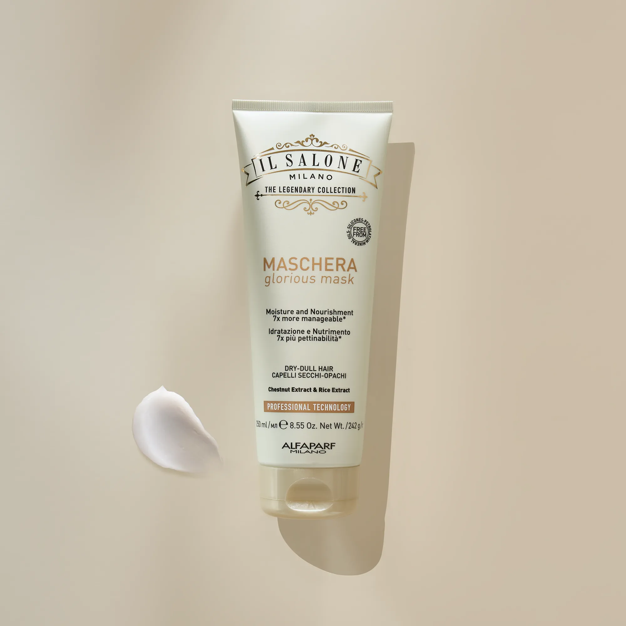 Професійна маска для тьмяного, сухого волосся. Глибоко живить волосся, полегшуючи його розчісування в 7 разів*. Використовується перукарями.