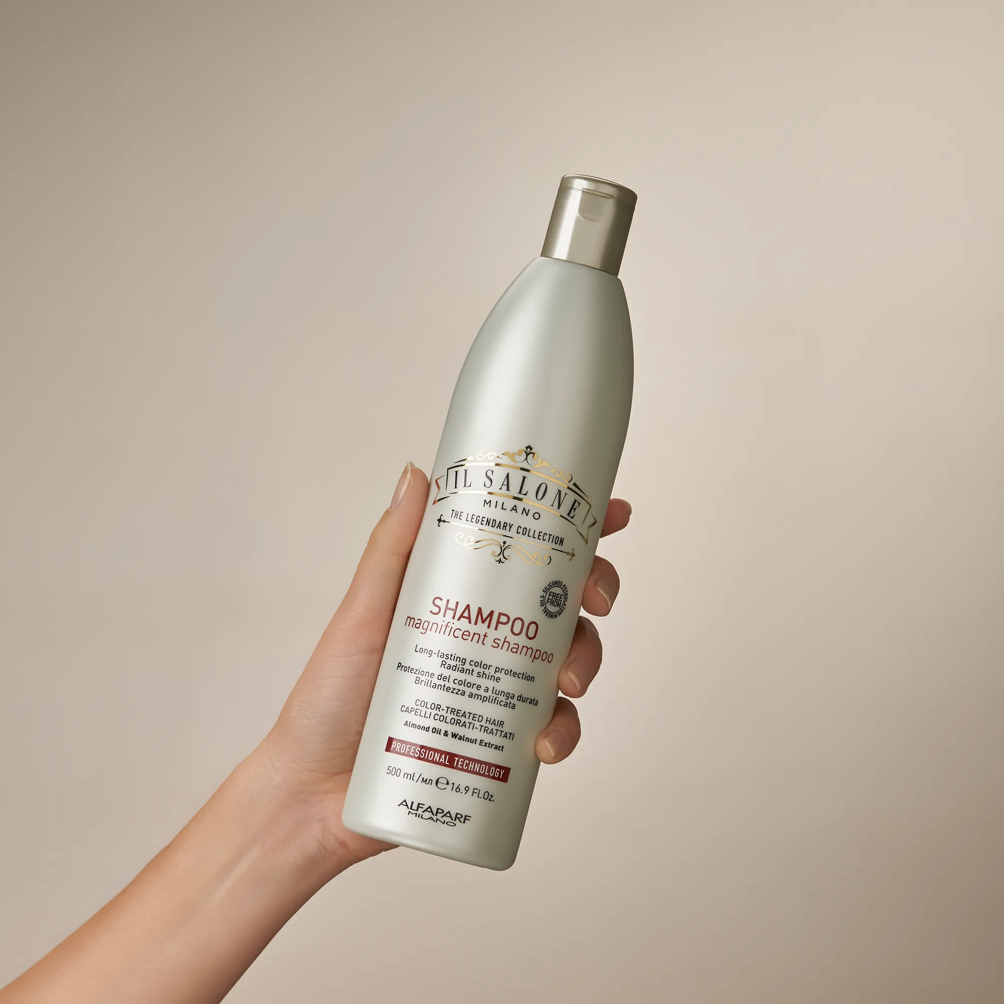 Відкрийте для себе лінію продуктів Magnificent : мигдальна олія та екстракт волоського горіха доглядають за фарбованим волоссям та надають йому надзвичайної інтенсивності. Веганські формули free from парафінів, петролатуму, мінеральних олій та барвників.