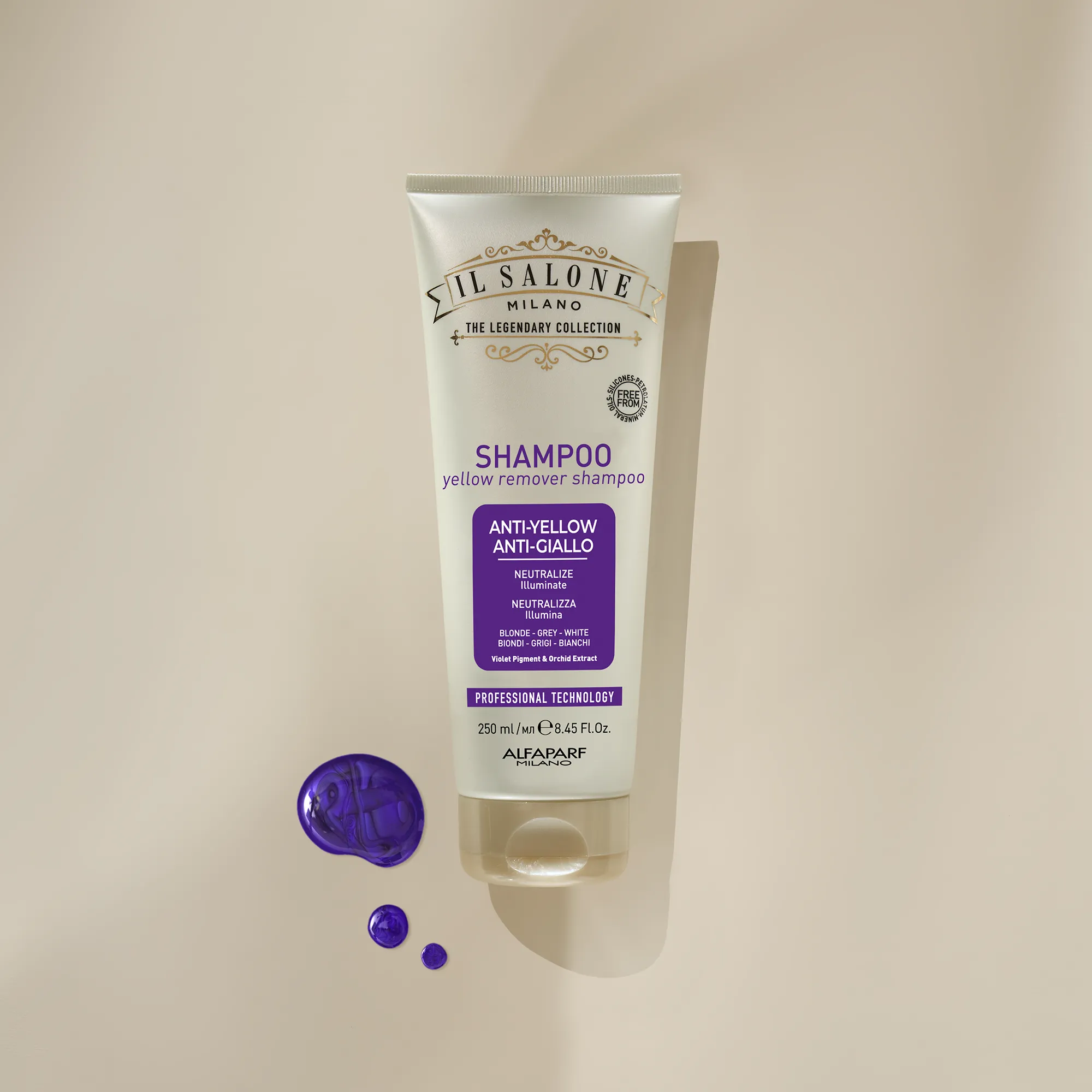 Професійний шампунь проти жовтизни. Розроблений на основі системи Violet Care System, він нейтралізує небажані жовті тони та підсилює природне сяйво. Фіолетова формула.